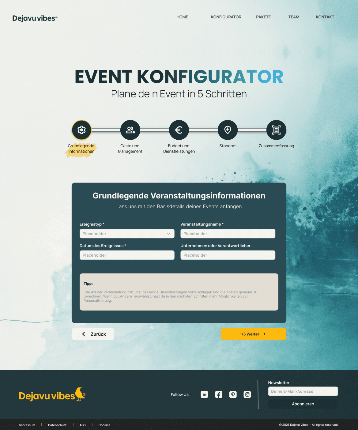 The MVP was centered around an event configurator as the product’s core feature. Strategically, predefined packages were also introduced as a faster alternative for users and as a basis for A/B testing. This decision helped validate user behavior while laying the groundwork for scaling the MVP into a SaaS solution applicable beyond the initial startup.