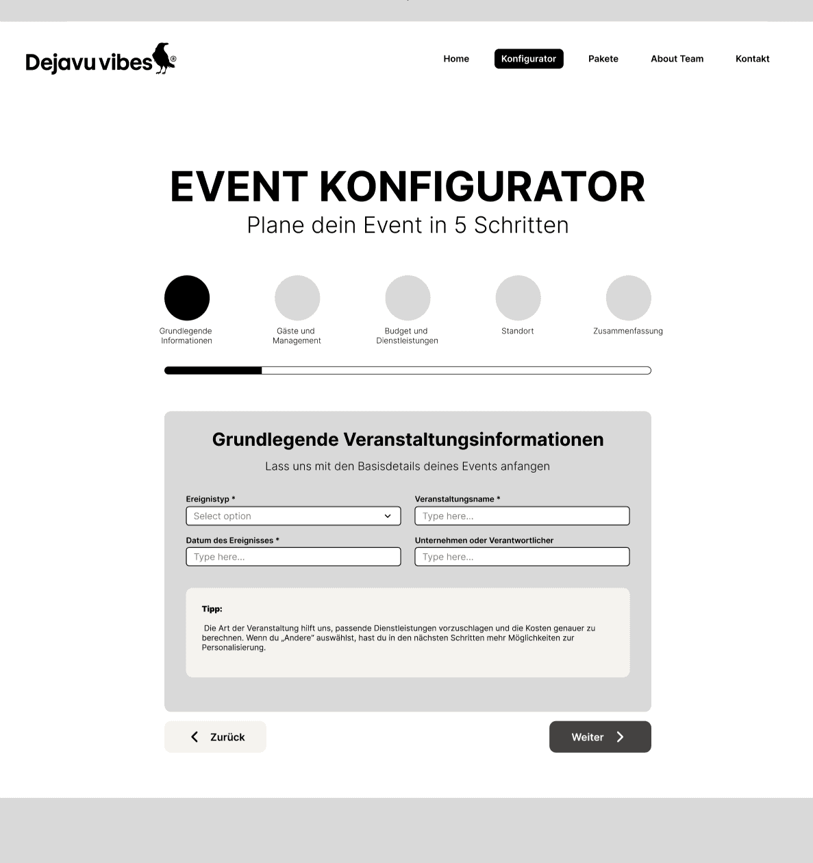 Project Type: MVP – Event Configurator (For a German Startup)