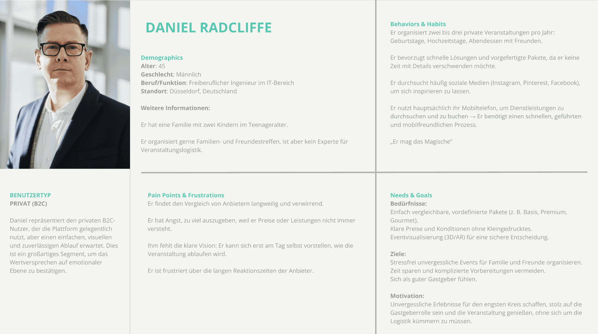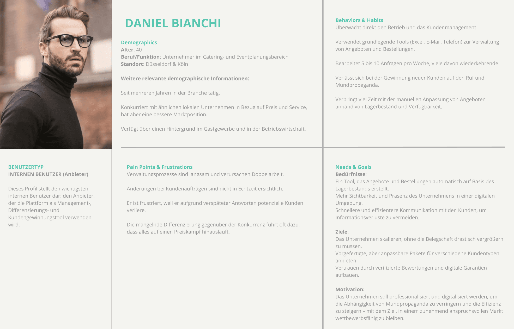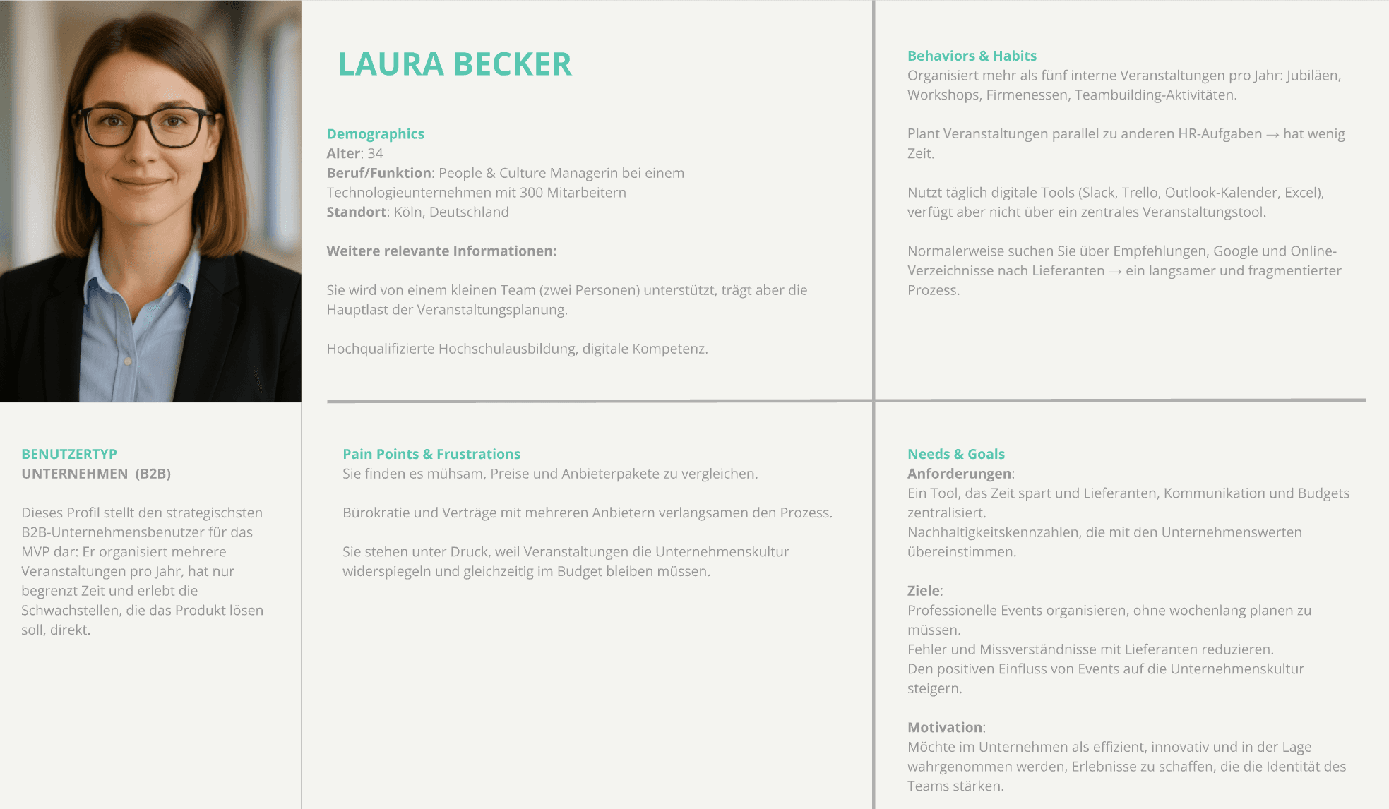 B2B users lack a clear and centralized way to explore, compare, and configure event organization and catering services. Fragmented information, opaque pricing, and unclear processes create uncertainty and friction during the discovery phase, making decision-making slow and unreliable.