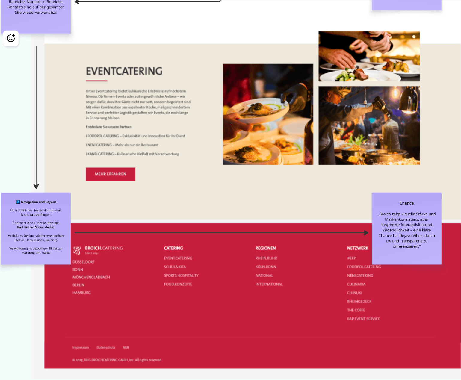 Although the brand communicates quality and experience well, users are not guided through a clear planning journey. There is no structured way to compare options, understand impact, or progress step-by-step toward a request, which increases friction in complex B2B scenarios.